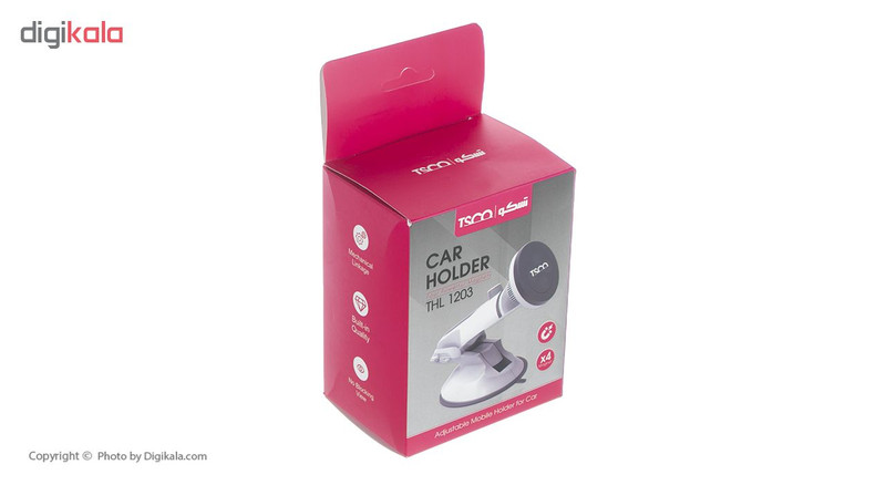 پایه نگهدارندهی «تسکو» (Tsco) برای اکثر گوشیهای موبایل طراحی شده و وزن کمی دارد. این پایه با استفاده از سیلیکون و پلاستیک ساخته شده و به سادگی روی داشبورد یا شیشه جلو خودروتان نصب خواهد شد. مدل «THL 1203» از سری محصولات تسکو پایهای دارد که بهآسانی به داشبورد یا شیشه جلوی خودرو متصل خواهد شد. همچنین این پایه امکان چسبیدن و محکم قرار گرفتن روی دیگر سطوح نسبتاً صاف مانند میز را هم خواهد داشت. مگنتهای این محصول باعث می شوند که گوشی موبایل موردنظر بهراحتی به این پایه بچسبد و در جای خود محکم شود. برای استفاده از این مدل کافی است پایه را با استفاده از قسمت سیلیکونی آن به داشبورد خودرو متصل کنید. سپس قسمت نگهدارندهی گوشی موبایل در پایه را براساس اندازهی گوشی موبایلتان بازکرده و دستگاه را داخل آن قرار دهید.