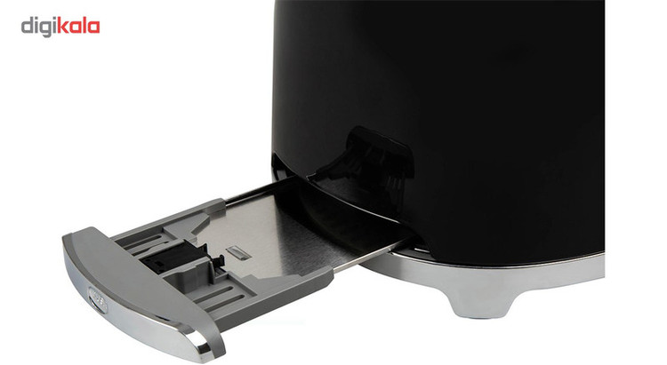 توستر اسمگ مدل TSF02 طراحی بسیار خاص و زیبایی دارد که یادآور وسایل خانگی قدیمی است. این مدل از سری 50s Style اسمگ است که با الگوبرداری از سبک طراحی دههی 60 و اوج دوران مدرنیته طراحی شدهاند. از همین رو در طراحی آنها از خطهای صاف و زاویههای تند استفاده نشده است. این سبک طراحی باعث میشود دستگاه حس خشک و صنعتی یک ماشین را نداشته باشد و بیشتر دکوراسیون آشپزخانه را گرم و صمیمی کند. این توستر دارای ۴ جای نان است و از این رو برای خانوادهها بسیار مناسب است. همانطور که از نام این دستگاه پیداست، کار اصلی آن تست کردن نان است. باوجود قابلیت تنظیم حرارت، کاربر میتواند نان تست خود را به میزان مورد علاقهی خود تست کند تا کاملا ترد، نیمه ترد یا نرم باشد. البته برای دستگاه دکمهی توقف هم در نظر گرفته شده تا کاربر بتواند فرایند تست شدن را متوقف کردن و میزان تردی نان را بسنجد. البته که توستر غیر از کار اصلی خود، برای یخ زدایی نان هم کاربرد دارد. شاید این مفیدترین کاربرد توستر باشد چون مشکل گرم کردن نان با مایکروفر یا روی گاز را حل میکند. وقتی نان را روی اجاق گاز گرم میکنیم احتمال سوختن آن بسیار زیاد است. همچنین وقتی نان را با مایکروفر گرم میکنیم تنها برای چند دقیقه حالت تازگی دارد و پس از آن کاملا خشک و سفت میشود. اما توستور با حرارت طبیعی، متداوم و نه چندان زیاد نان را یخزدایی و سپس گرم میکند. به این صورت نان طوری گرم میشود که انگار به تازگی از تنور بیرون آمده است. برای این که خورده نان داخل توستر جمع نشود و تمیز کردنش کاربر را دچار دردسر کند، یک سینی کشویی زیر دستگاه کار گذاشته شده که خوردههای نان روی آن میریزد و کاربر به سادگی آن را بیرون میکشد و تمیز میکند.