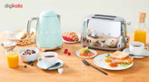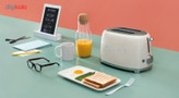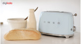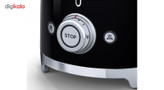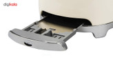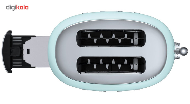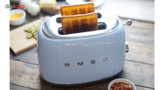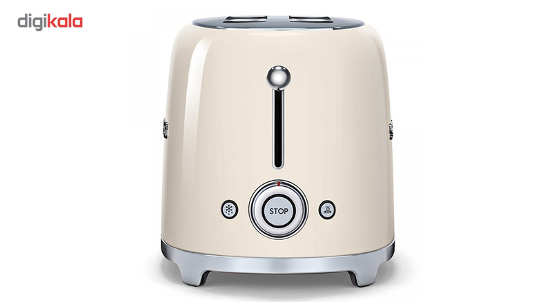 توستر اسمگ مدل TSF01 طراحی بسیار خاص و زیبایی دارد که یادآور وسایل خانگی قدیمی است. این مدل از سری 50s Style اسمگ است که با الگوبرداری از سبک طراحی دههی 60 و اوج دوران مدرنیته طراحی شدهاند. از همین رو در طراحی آنها از خطهای صاف و زاویههای تند استفاده نشده است. این سبک طراحی باعث میشود دستگاه حس خشک و صنعتی یک ماشین را نداشته باشد و بیشتر دکوراسیون آشپزخانه را گرم و صمیمی کند. این توستر دارای 2 جای نان است و از این رو برای خانوادههای کوچک دو نفره بسیار مناسب است. همانطور که از نام این دستگاه پیداست، کار اصلی آن تست کردن نان است. باوجود قابلیت تنظیم حرارت، کاربر میتواند نان تست خود را به میزان مورد علاقهی خود تست کند تا کاملا ترد، نیمه ترد یا نرم باشد. البته برای دستگاه دکمهی توقف هم در نظر گرفته شده تا کاربر بتواند فرایند تست شدن را متوقف کردن و میزان تردی نان را بسنجد. البته که توستر غیر از کار اصلی خود، برای یخ زدایی نان هم کاربرد دارد. شاید این مفیدترین کاربرد توستر باشد چون مشکل گرم کردن نان با مایکروفر یا روی گاز را حل میکند. وقتی نان را روی اجاق گاز گرم میکنیم احتمال سوختن آن بسیار زیاد است. همچنین وقتی نان را با مایکروفر گرم میکنیم تنها برای چند دقیقه حالت تازگی دارد و پس از آن کاملا خشک و سفت میشود. اما توستر با حرارت طبیعی، متداوم و نه چندان زیاد نان را یخزدایی و سپس گرم میکند. به این صورت نان طوری گرم میشود که انگار به تازگی از تنور بیرون آمده است. برای این که خورده نان داخل توستر جمع نشود و تمیز کردنش کاربر را دچار دردسر کند، یک سینی کشویی زیر دستگاه کار گذاشته شده که خوردههای نان روی آن میریزد و کاربر به سادگی آن را بیرون میکشد و تمیز میکند.