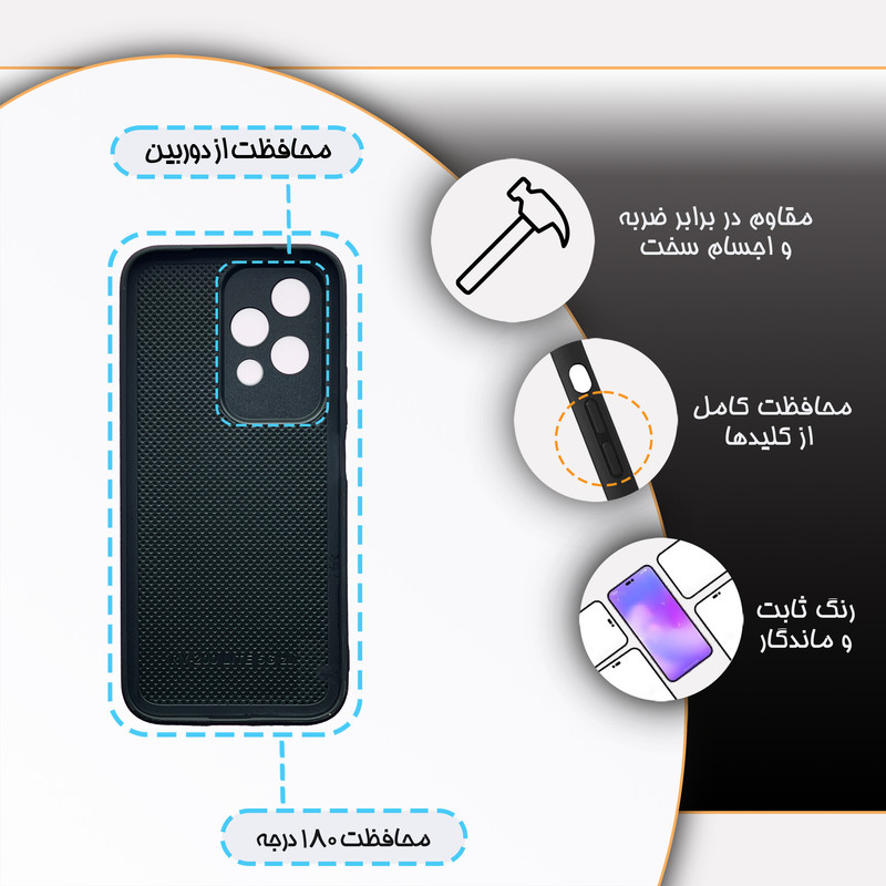 ویژگی‌های کیف و کاور : مقاوم در برابر ضربه , لبه های برجسته برای محافظت صفحه نمایش , مقاوم در برابر خط و خش , لبه های برجسته برای محافظت دوربین