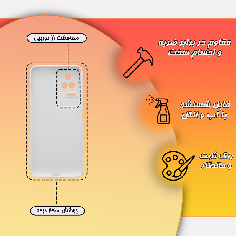 ویژگی‌های کیف و کاور : مقاوم در برابر ضربه , انعطاف پذیر , لبه های برجسته برای محافظت صفحه نمایش , لبه های برجسته برای محافظت دوربین