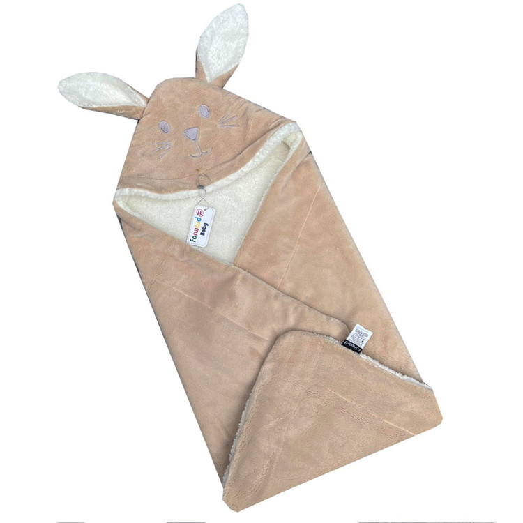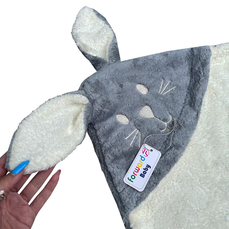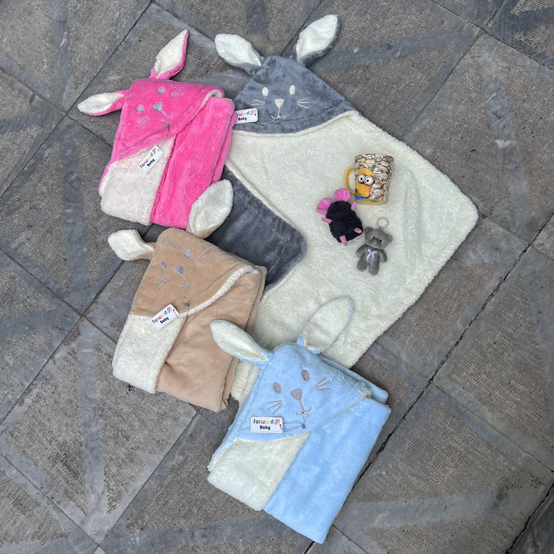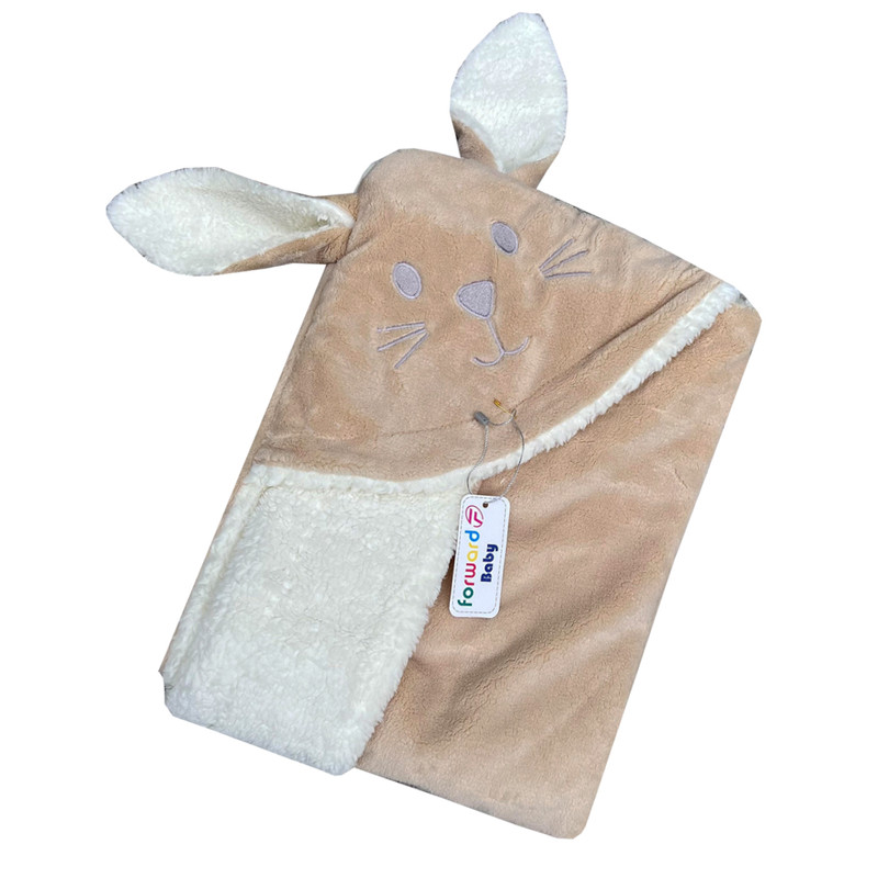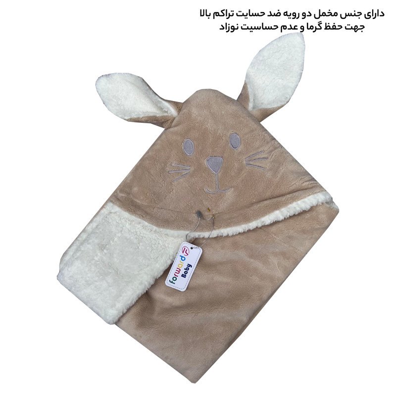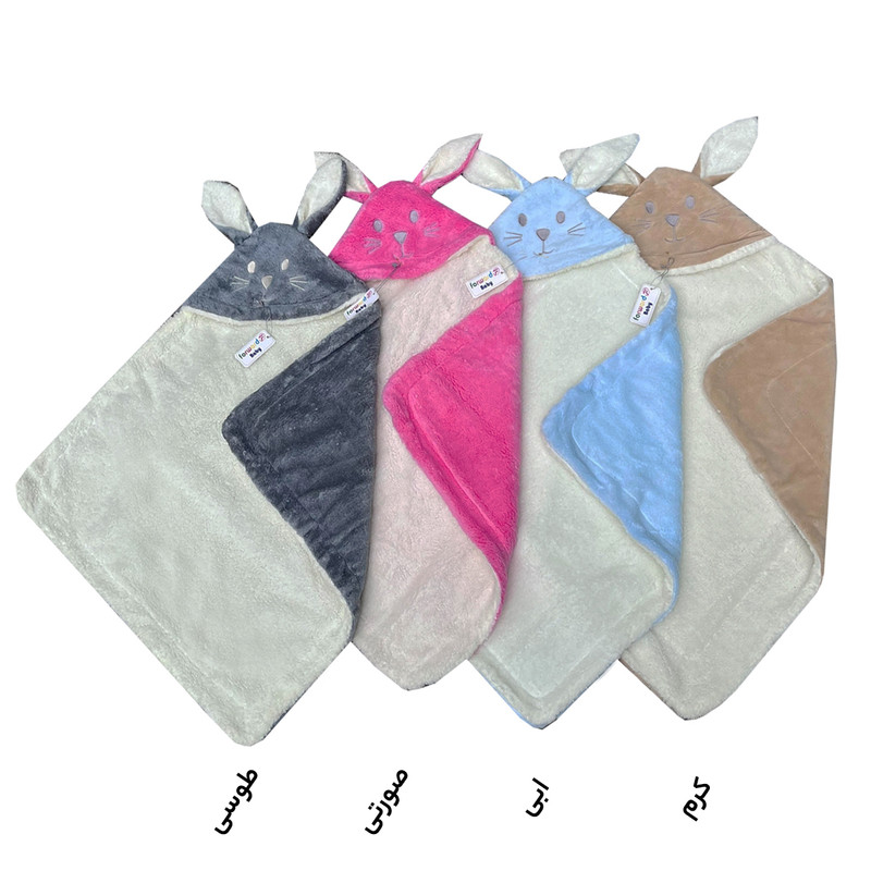 دارای جنس پنبه ای پلیشی ضخیم دو رو ضد حساسیت مناسب فصل های سرد و خنک دارای سر خرگوش فانتزی مناسب جهت استفاده به عنوان قنداق و پتو برای نوزادان و به عنوان پتو برای کودکان تا4 سال
