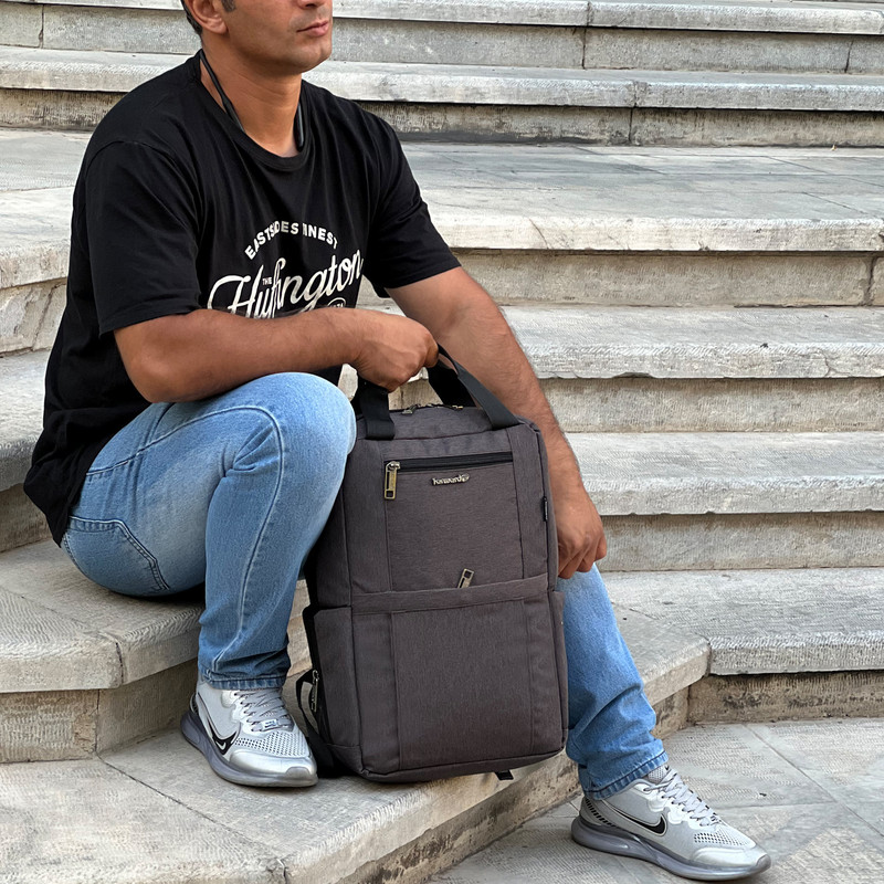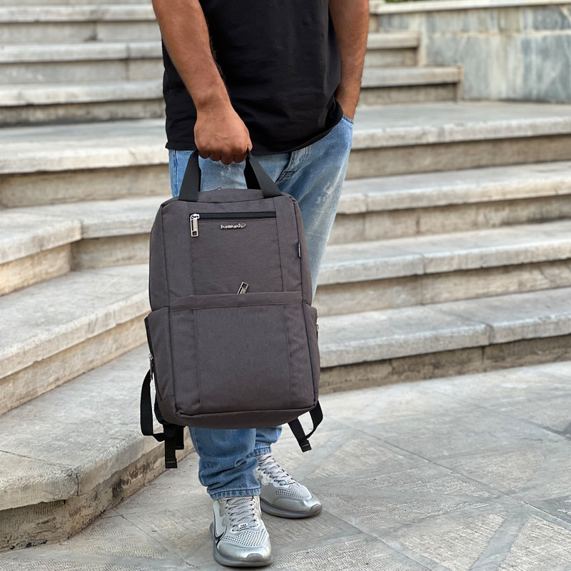 دارای دو بند کولی همراه با پد تهویه هوای سر تا سری جهت حمل کوله به صورت کولی دارای یک دسته از جنس نوار الگانس ضخیم جهت حمل به صورت دستی