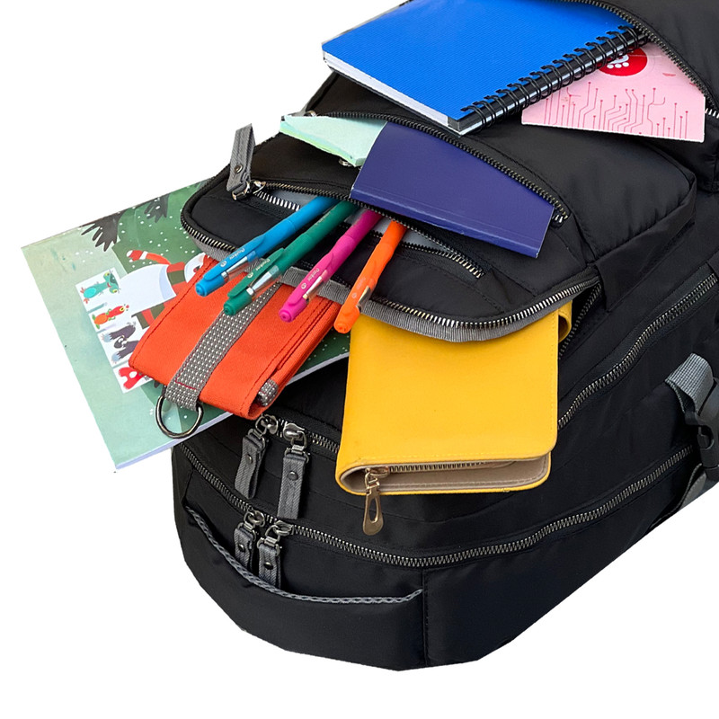 جیب بیرونی , جیب داخلی , دارای یک محفظه اصلی , محفظه نگهداری اسناد , محفظه نگهداری لپتاپ , دارای دو محفظه اصلی