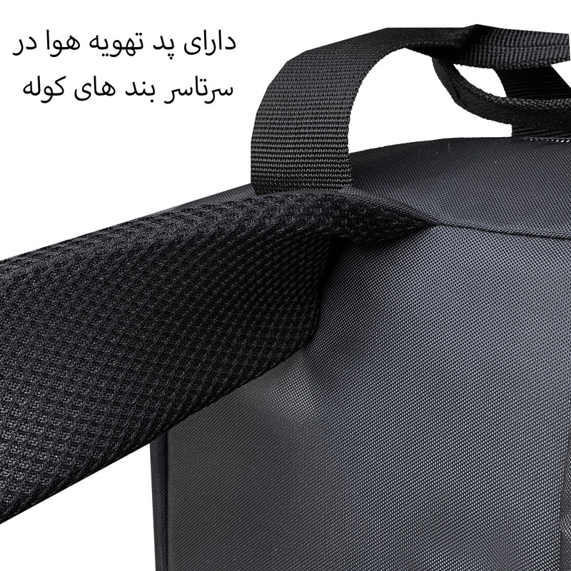 جیب بیرونی , جیب داخلی , دارای یک محفظه اصلی , محفظه نگهداری اسناد , محفظه نگهداری لپتاپ