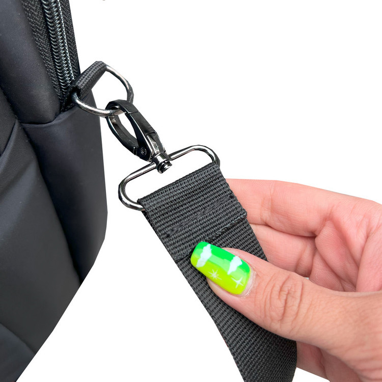 دارای یک بند دوشی قابل جدا شدن و قابل تنظیم جهت حمل دوشی دارای دو بند کولی قابل مخفی شدن جهت حمل به صورت کوله ای دارای دو دسته همراه با چسب دوبل جهت حمل دستی