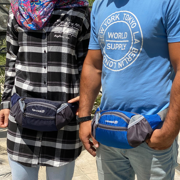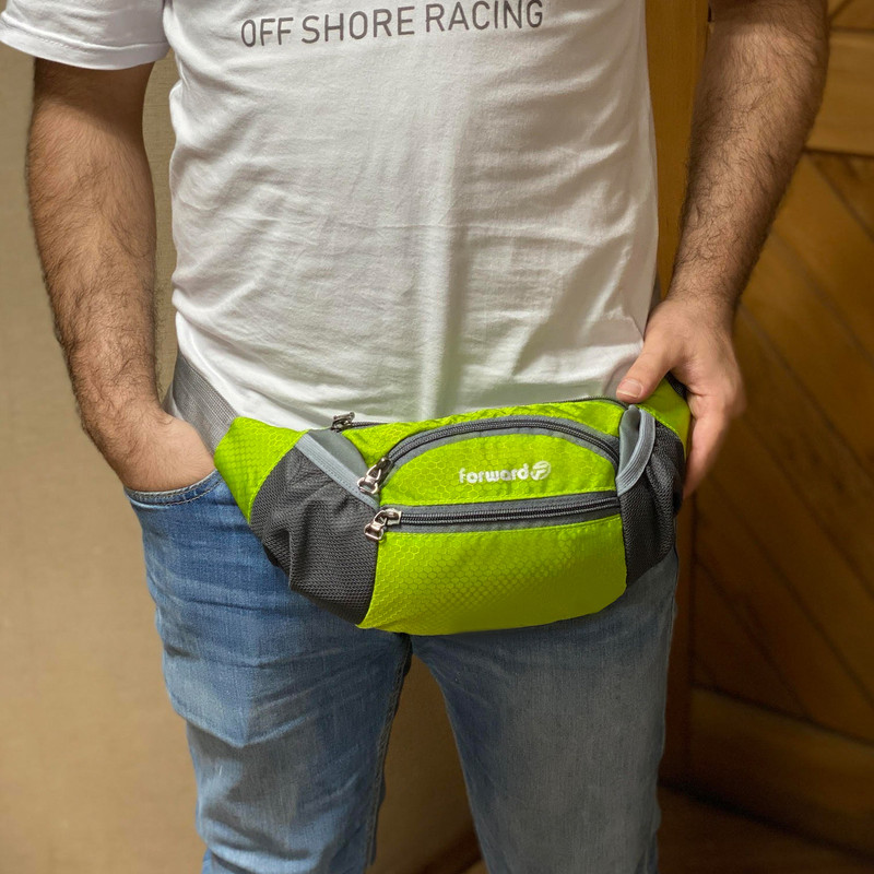 دارای یک زیپ مخفی در قسمت پشتی کیف کمری دارای 3 زیپ بزرگ در قسمت جلویی کیف کمری دارای دو جیب توری کش دار جهت قرار دادن وسایل و بطری نوشیدنی