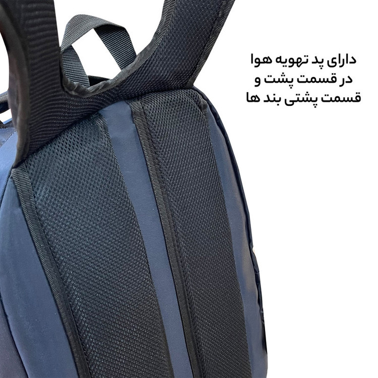 دارای دو بند کولی جهت حمل به صورت تک بند و دو بندی همراه با پد تهویه هوا دارای یک دسته از جنس بدنه جهت حمل به صورت دستی همراه با دوخت کمکی الیک دارای یک دسته از جنس نوار الگانس ضخیم و مقاوم جهت آویزان کردن محصول و یا حمل دستی