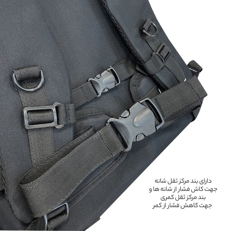 دارای چهار جیب بیرونی و یک جیب داخلی است و یک جیب زیپی شبرنگ در جلوی کوله برای دسترسی سریع به وسایل تعبیه شده است. این کوله قابلیت حمل به صورت دستی و رودوشی را دارد و طراحی ارگونومیک آن فشار روی شانهها و کمر را کاهش میدهد. همچنین کفی مقاوم با استوک محافظ از ساییدگی کوله جلوگیری میکند.