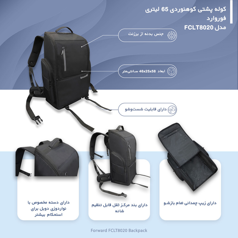 کوله پشتی کوهنوردی 65 لیتری فوروارد کد FCLT8020