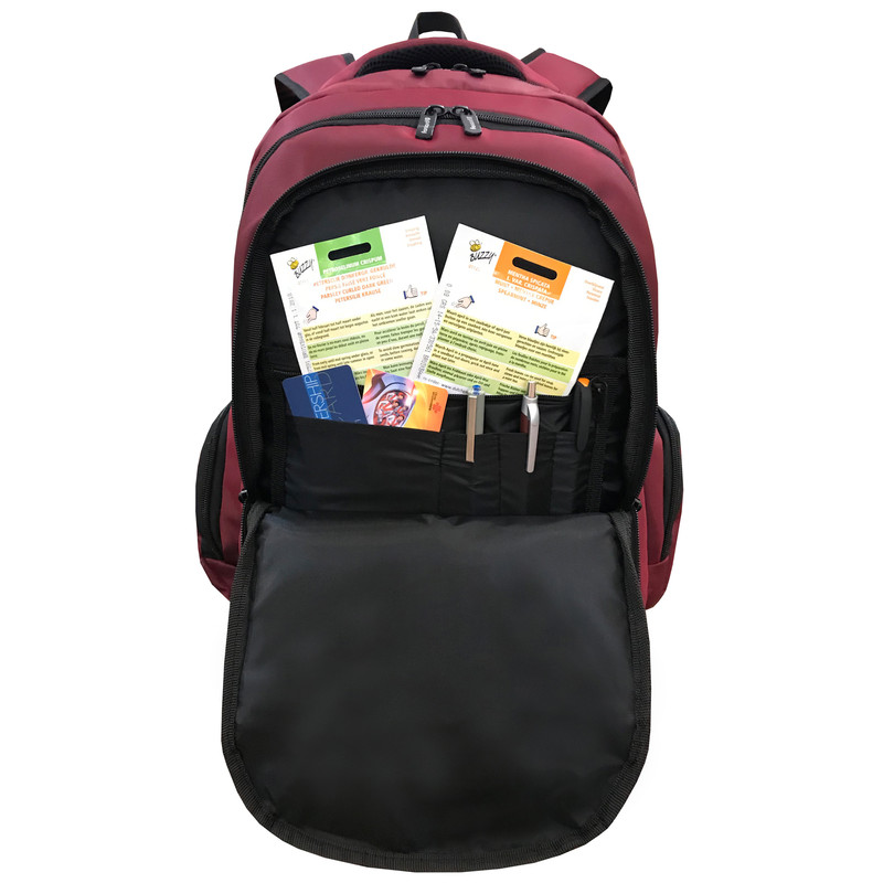 دارای 3 جیب زیپی بزرگ و 2 جیب بغل زیپی کوچک دارای محفظه نگهداری از خودکار، کارت و دیگر وسایل شخصی