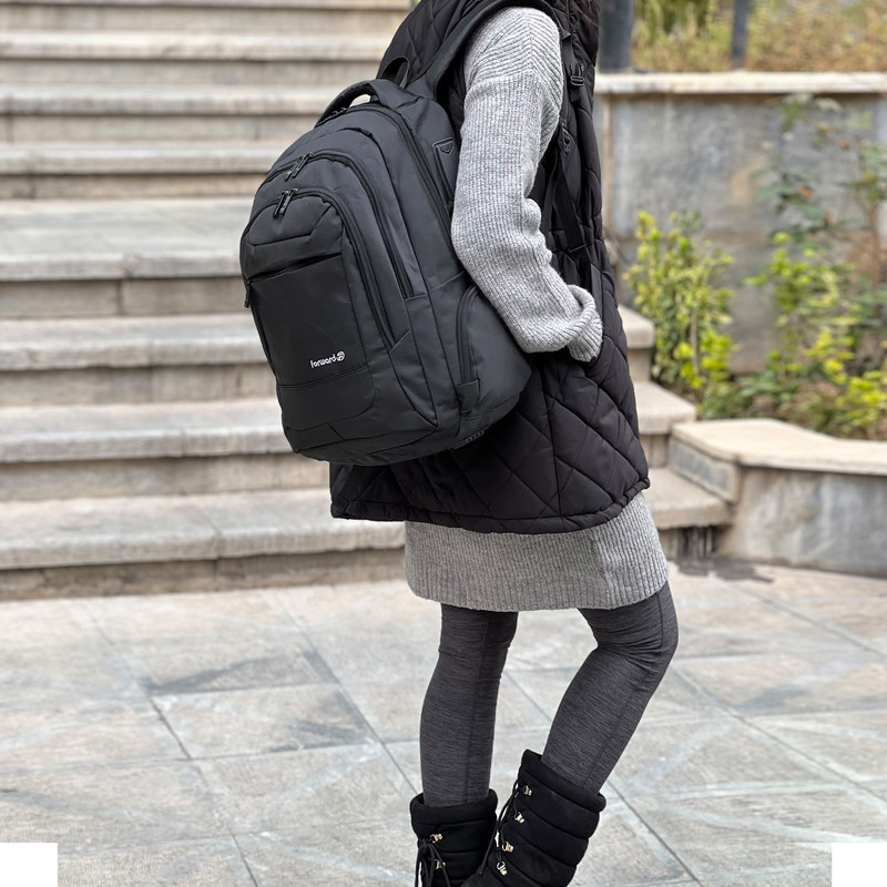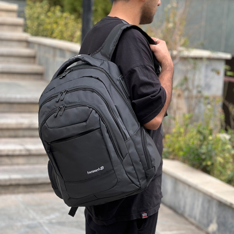 دارای 3 جیب زیپی بزرگ و 2 جیب بغل زیپی کوچک دارای محفظه نگهداری از خودکار، کارت و دیگر وسایل شخصی