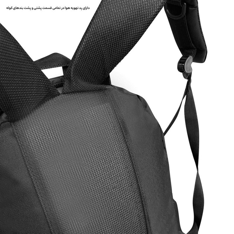 دارای ابر و آستر در تمامی قسمت های داخلی دارای پد تهویه هوا در قسمت پشتی بند ها و سرتاسر پشت کوله دارای جنس بدنه ضد آب و قابل شست و شو