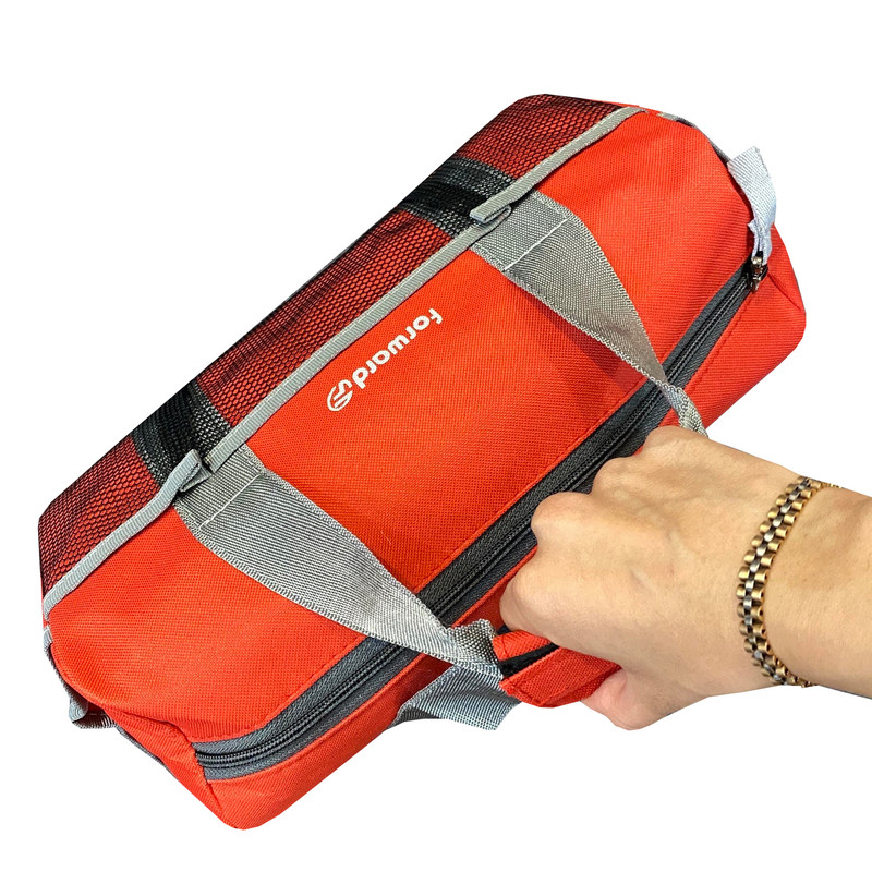 دارای یک محفظه اصلی جهت قرار دادن ابزار اصلی دارای دو جیب در دو طرف کیف ابزار جهت قرار دادن وسایل کوچک دارای 3 محفظه توری در قسمت جلویی کیف ابزار دارای ابر و آستر در سرتاسر کیف ابزار دارای زیپ روان دارای دسته چسبی جهت حمل اسان تر