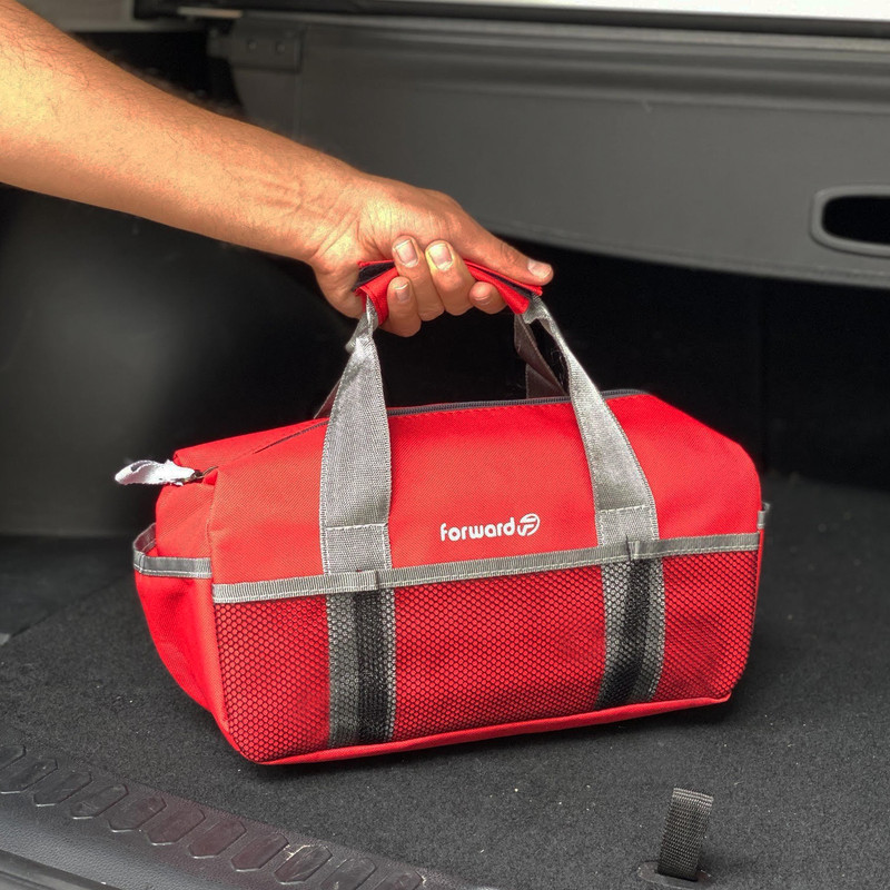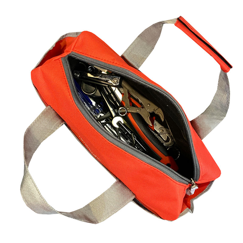 دارای یک محفظه اصلی جهت قرار دادن ابزار اصلی دارای دو جیب در دو طرف کیف ابزار جهت قرار دادن وسایل کوچک دارای 3 محفظه توری در قسمت جلویی کیف ابزار دارای ابر و آستر در سرتاسر کیف ابزار دارای زیپ روان دارای دسته چسبی جهت حمل اسان تر