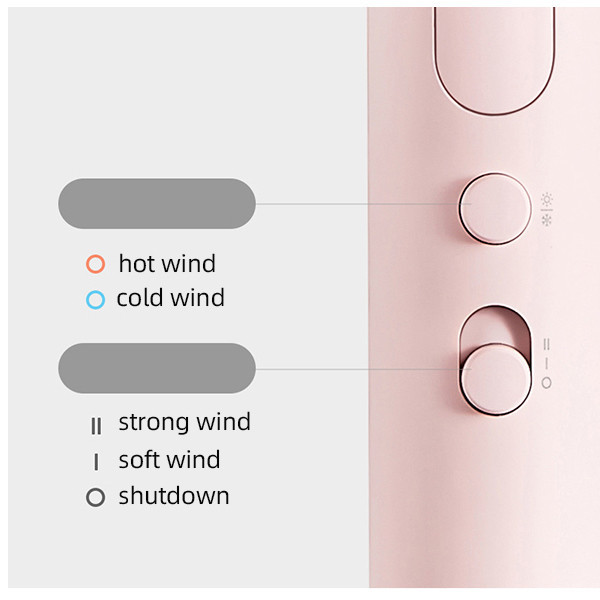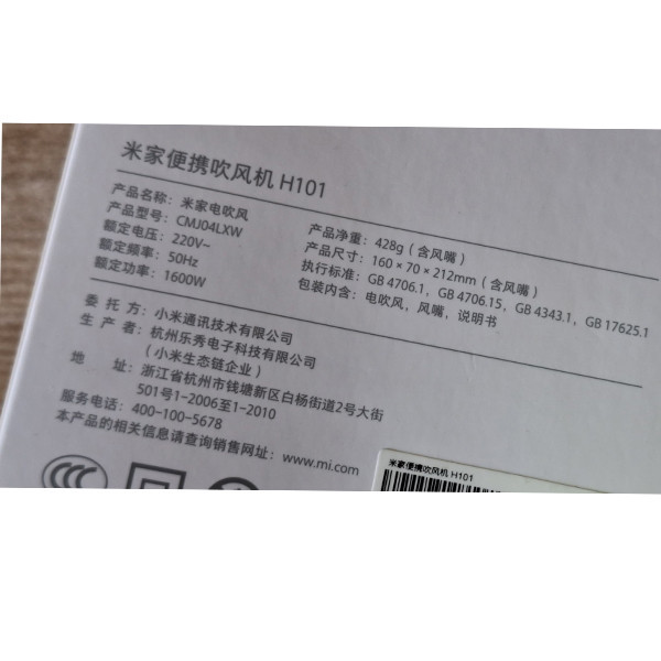 سشوار مسافرتی خانگی میجیا مدل H101، موتور AC با توان مصرفی 1600 وات، دارای قابلیت باد سرد، دارای حلقه آویختن، با حالت صاف‌کننده و حجم‌دهنده، وزن 500 گرم، تنظیم حرارت 2 حالته و کنترل سرعت 2 حالته، به همراه 1 عدد سری متمرکزکننده باریک