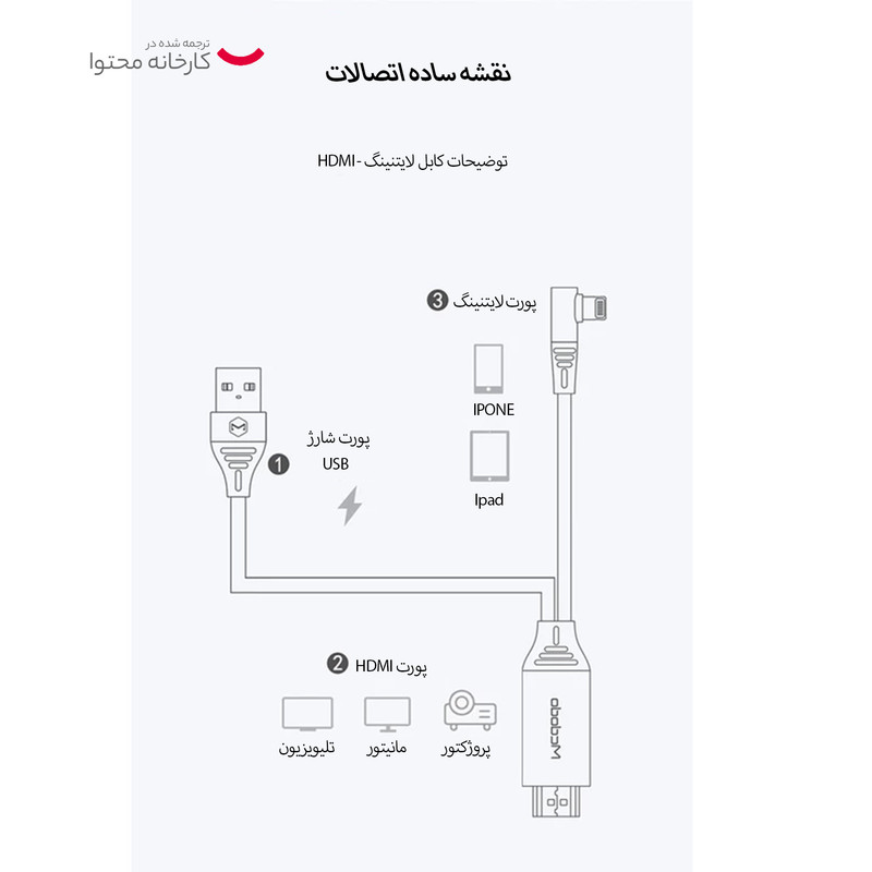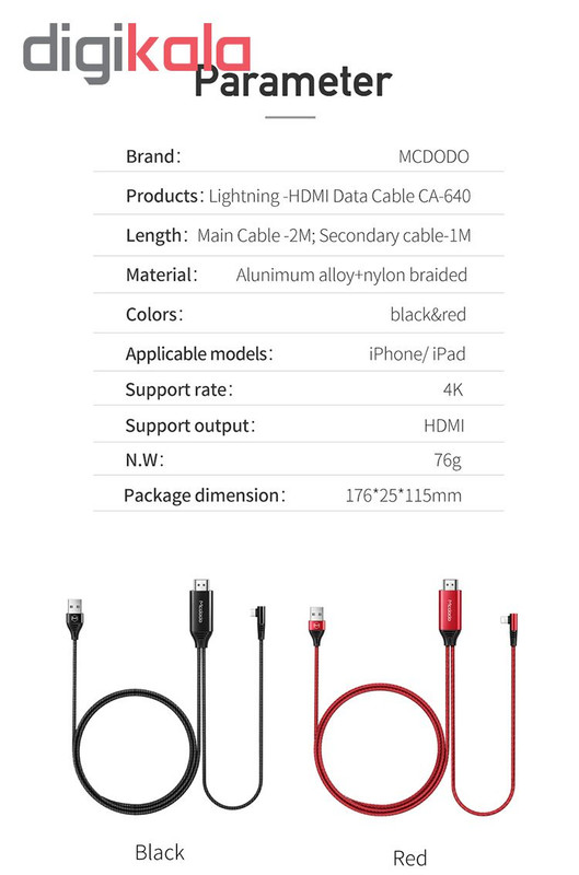 سایر توضیحات کابل : مناسب سیستم عامل IOS 9 به بالا قابلیت پخش تا کیفیت 4K