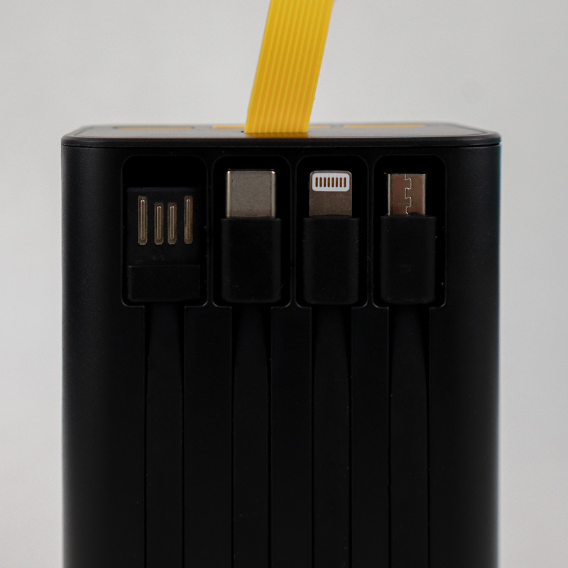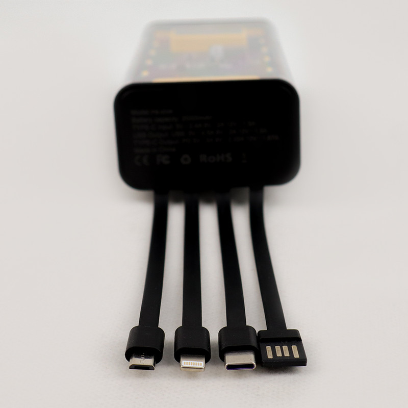 مشخصات فنی : ظرفیت 20000 هزار میلی آمپر - پشتیبانی از فناوری شارژ سریع-د- دارای 2عدد پورت USB - دارای 1عدد پورت Type-C میباشد - دارای چهار کابل متصل به پاوربانک microUSB - USB -Type-C -Lightning